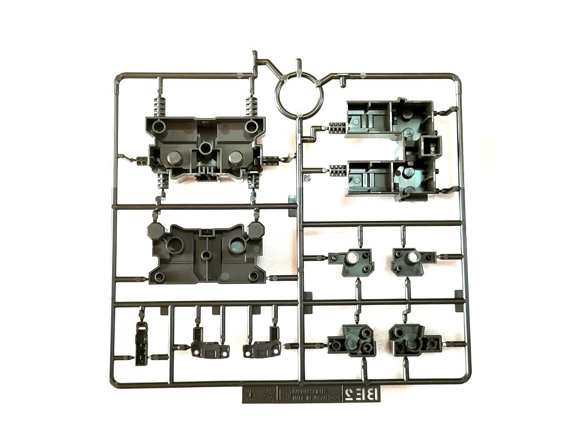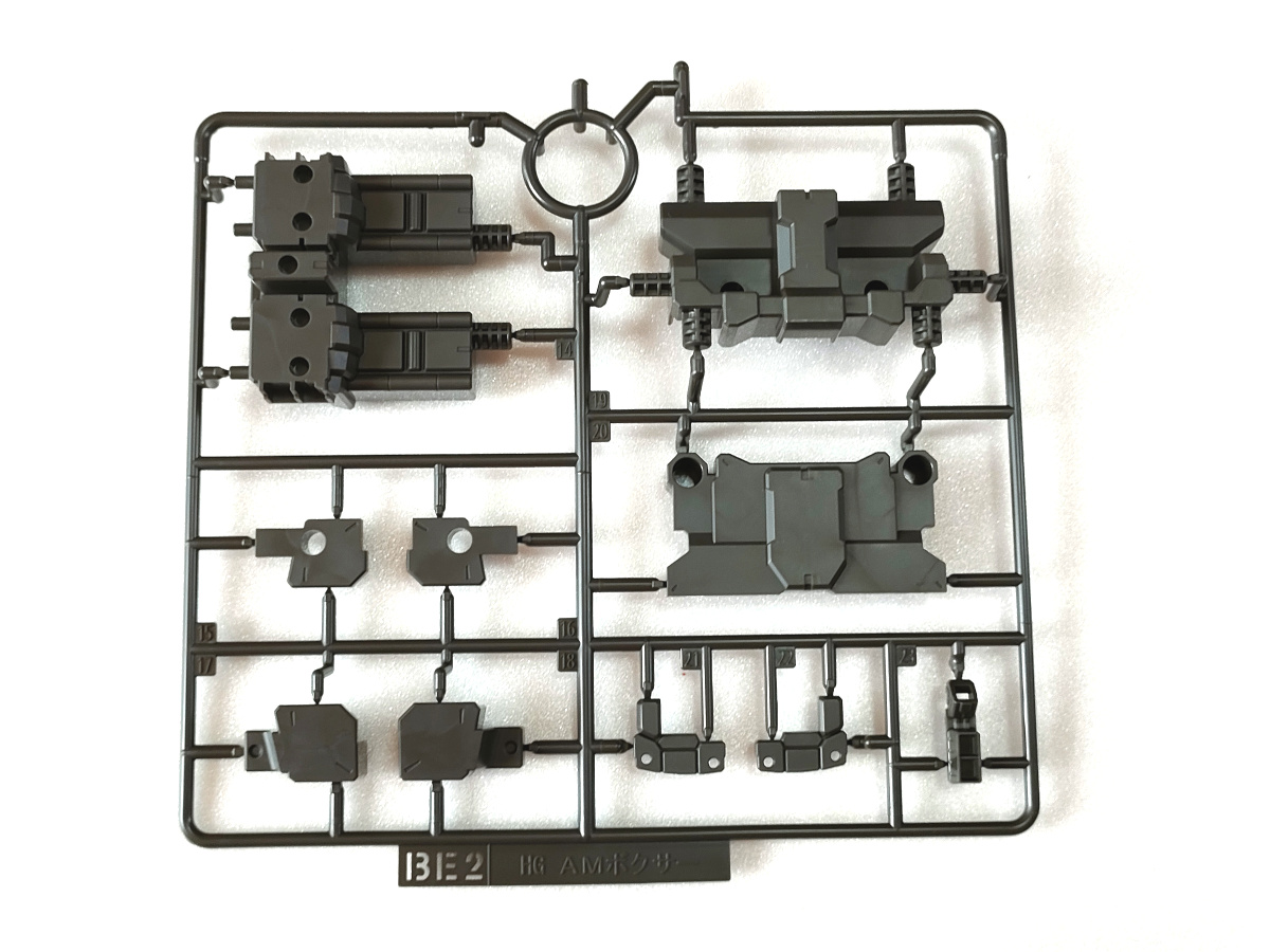 BBランナーとBDランナーが2枚同じものが入っているほか、スタンドパーツ、アクションベース、そしてリアルグレードのフレーム部分でなじみのある、ABSとボールジョイントで仮組されたハンドパーツ(Rランナー)となります。