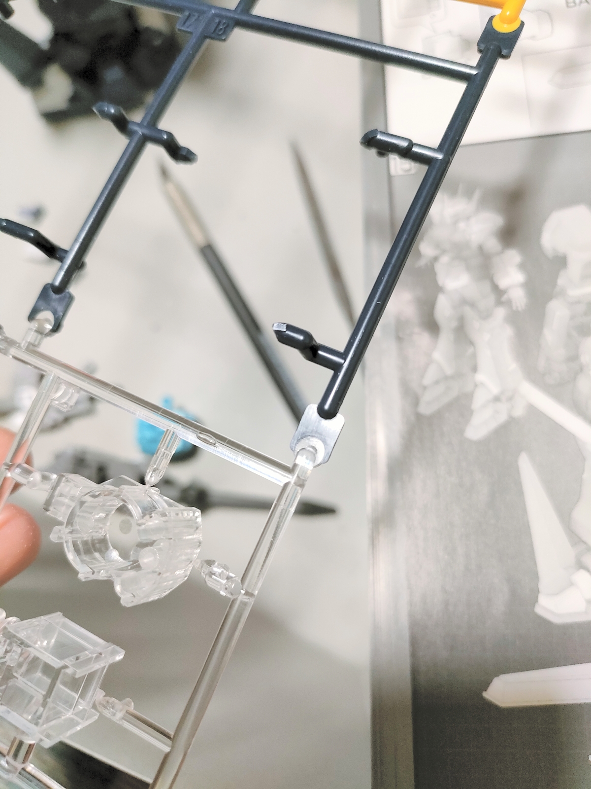 バンダイでは珍しくない多色成型のランナーで、ガンプラの系譜を見ることができますが、それでもクリアーパーツまでもAランナーの中につながっています。